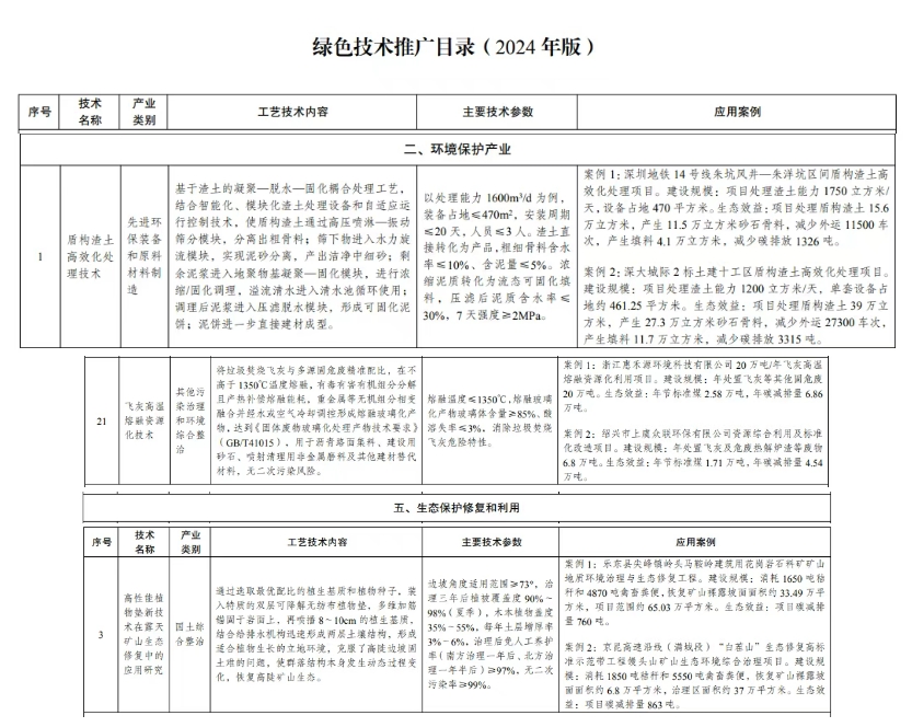 近期,國家發(fā)展改革委會同科技部、工業(yè)和信息化部、自然資源部、生態(tài)環(huán)境部、住房城鄉(xiāng)建設(shè)部、國務(wù)院國資委、國家能源局印發(fā)了《綠色技術(shù)推廣目錄(2024年版)》(發(fā)改環(huán)資〔2024〕1812號,以下稱《目錄》)?!赌夸洝峰噙x了七大類產(chǎn)業(yè)112項先進(jìn)綠色技術(shù),其中在“環(huán)境保護(hù)產(chǎn)業(yè)”及“生態(tài)保護(hù)修復(fù)和利用產(chǎn)業(yè)”中多項技術(shù)涉及砂石。 如“材料制造”類別中的“盾構(gòu)渣土高效化處理技術(shù)先進(jìn)環(huán)保裝備和原料”、“其他污染治理和環(huán)境綜合整治材料制造”類別中的“飛灰高溫熔融資源化技術(shù)”、“國土綜合整治”類別中的“高性能植物墊新技術(shù)在露天礦山生態(tài)修復(fù)中的應(yīng)用研究”等,在實際應(yīng)用中都有突出貢獻(xiàn)。 據(jù)悉,國家發(fā)展改革委鼓勵金融機構(gòu)通過綠色信貸、綠色債券、碳減排支持工具等,加強對《目錄》內(nèi)綠色技術(shù)應(yīng)用的融資支持。 《目錄》中多項涉及砂石行業(yè),如“材料制造”類別中的“盾構(gòu)渣土高效化處理技術(shù)先進(jìn)環(huán)保裝備和原料”,基于渣土的凝聚—脫水—固化耦合處理工藝,結(jié)合智能化、模塊化渣土處理設(shè)備和自適應(yīng)運行控制技術(shù),使盾構(gòu)渣土通過高壓噴淋—振動篩分模塊,分離出粗骨料;篩下物進(jìn)入水力旋流模塊,實現(xiàn)泥砂分離,產(chǎn)出潔凈中細(xì)砂;剩余泥漿進(jìn)入地聚物基凝聚—固化模塊,進(jìn)行濃縮/固化調(diào)理,溢流清水進(jìn)入清水池循環(huán)使用;調(diào)理后泥漿進(jìn)入壓濾脫水模塊,形成可固化泥餅;泥餅進(jìn)一步直接建材成型。 案例1:深圳地鐵14號線朱坑風(fēng)井—朱洋坑區(qū)間盾構(gòu)渣土高效化處理項目。建設(shè)規(guī)模:項目處理渣土能力1750立方米/天,設(shè)備占地470平方米。生態(tài)效益:項目處理盾構(gòu)渣土15.6萬立方米,產(chǎn)生11.5萬立方米砂石骨料,減少外運11500車次,產(chǎn)生填料4.1萬立方米,減少碳排放1326噸。 案例 2:深大城際2標(biāo)土建十工區(qū)盾構(gòu)渣土高效化處理項目。建設(shè)規(guī)模:項目處理渣土能力1200立方米/天,單套設(shè)備占地約461.25平方米。生態(tài)效益:項目處理盾構(gòu)渣土39萬立方米,產(chǎn)生27.3萬立方米砂石骨料,減少外運27300車次,產(chǎn)生填料11.7萬立方米,減少碳排放3315噸。 “其他污染治理和環(huán)境綜合整治材料制造”類別中的“飛灰高溫熔融資源化技術(shù)”,將垃圾焚燒飛灰與多源固危廢精準(zhǔn)配比,在不高于1350℃溫度熔融,有毒有害有機組分分解且產(chǎn)熱補償熔融能耗,重金屬等無機組分相變?nèi)诤喜⒔?jīng)水或空氣冷卻調(diào)控形成熔融玻璃化產(chǎn)物,達(dá)到《固體廢物玻璃化處理產(chǎn)物技術(shù)要求》(GB/T 41015),用于瀝青路面集料、建設(shè)用砂石、噴射清理用非金屬磨料及其他建材替代材料,無二次污染風(fēng)險。 案例 1:浙江惠禾源環(huán)境科技有限公司20萬噸/年飛灰高溫熔融資源化利用項目。建設(shè)規(guī)模:年處置飛灰等其他固危廢20萬噸。生態(tài)效益:年節(jié)標(biāo)準(zhǔn)煤2.58萬噸,年碳減排量6.86萬噸。 案例 2:紹興市上虞眾聯(lián)環(huán)保有限公司資源綜合利用及標(biāo)準(zhǔn)化改造項目。建設(shè)規(guī)模:年處置飛灰及危廢熱解爐渣等廢物6.8萬噸。生態(tài)效益:年節(jié)標(biāo)準(zhǔn)煤1.71萬噸,年碳減排量 4.54 萬噸。 “國土綜合整治”類別中的“高性能植物墊新技術(shù)在露天礦山生態(tài)修復(fù)中的應(yīng)用研究”,通過選取最優(yōu)配比的植生基質(zhì)和植物種子,裝入特質(zhì)的雙層可降解無紡布植物墊,多維加筋錨固于巖面上,再噴播8~10cm的植生基質(zhì),結(jié)合給排水機構(gòu)迅速形成兩層土壤結(jié)構(gòu),形成適合植物生長的立地環(huán)境,克服了高陡邊坡固土難的問題,使群落結(jié)構(gòu)本身發(fā)生動態(tài)過程變化,恢復(fù)高陡礦山生態(tài)。 案例 1:樂東縣尖峰鎮(zhèn)嶺頭馬鞍嶺建筑用花崗巖石料礦礦山地質(zhì)環(huán)境治理與生態(tài)修復(fù)工程。建設(shè)規(guī)模:消耗1650噸秸稈和4870噸禽畜糞便,恢復(fù)礦山裸露坡面面積約 33.49萬平方米,項目范圍約65.03萬平方米。生態(tài)效益:項目碳減排量760噸。 案例 2:京昆高速沿線(滿城段)“白茬山”生態(tài)修復(fù)高標(biāo)準(zhǔn)示范帶工程饅頭山礦山生態(tài)環(huán)境綜合治理項目。建設(shè)規(guī)模:消耗1850噸秸稈和5550噸禽畜糞便,恢復(fù)礦山裸露坡面面積約6.8萬平方米,治理區(qū)面積約37萬平方米。生態(tài)效益:項目碳減排量863 噸。
